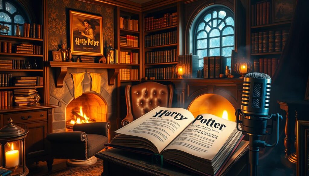 Stephen Fry’s voice is well-known and loved in audiobooks. He’s a British actor, comedian, and writer. His work on the Harry Potter series is a highlight. Fry’s way of telling these stories has won the hearts of listeners of all ages.